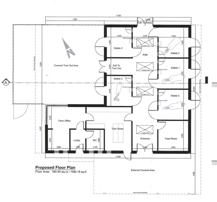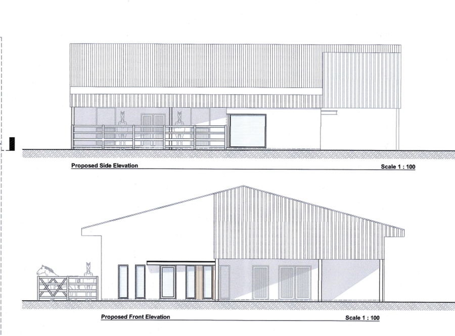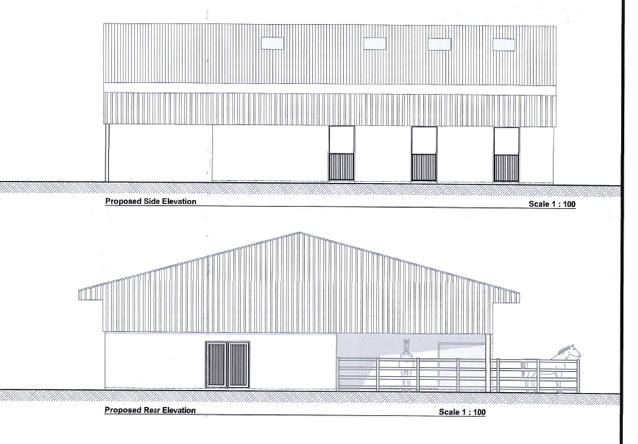 Full planning permission has been granted for the construction of a modern portal-framed shed together with a sand arena for equestrian use. The shed has been designed to accommodate five stables, feed storage, a tack room, office, and WC facilities.
