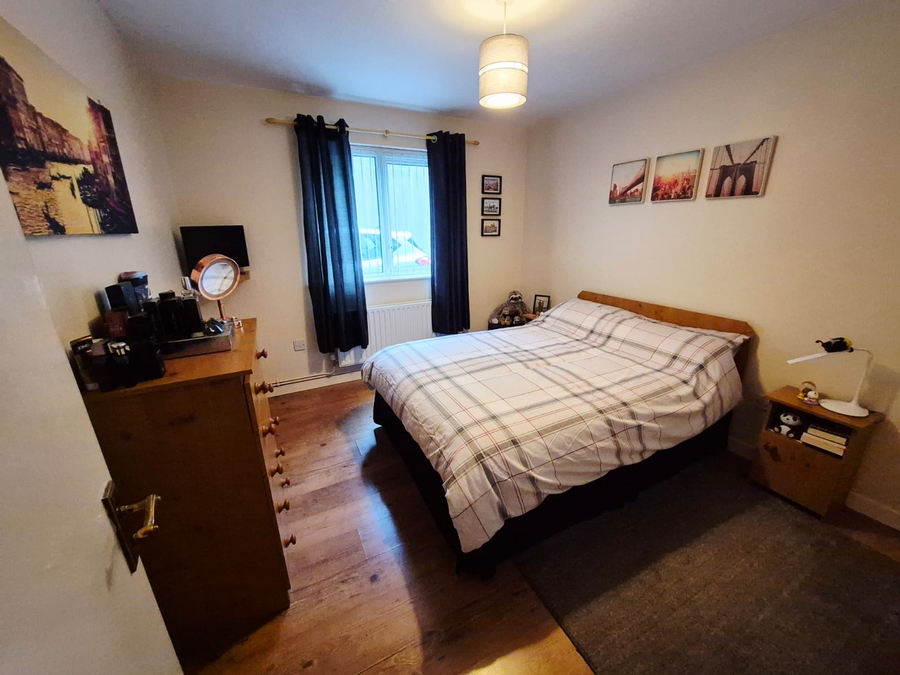 | Bedroom Two | 3.30m x 2.80m | Laminate timber floor. Window to rear with vertical blind. Centre ceiling light |
