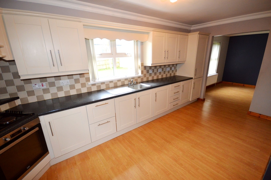 Kitchen | 5.40m x 3.00m (max measurement) | Range of high & low level kitchen units. Stainless steel sink (included). Electric oven (included). Electric hob (included). Extractor fan (included). Integrated fridge/freezer (included). Dual aspect windows. Laminate timber floors. Wall tiled between high & low level kitchen units. |