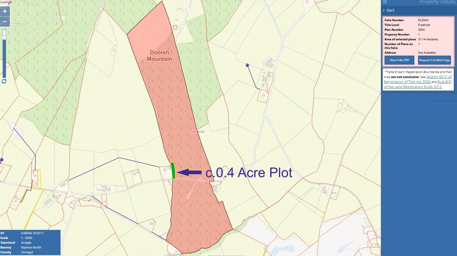 Offered for sale by private treaty on behalf of Coillte Teoranta, this plot measures approx. 0.16 hectares/0.4 acres and is located approx. 5.5km west of St. Johnston and 8km east of Manorcunningham. Part of folio DL3544 the plot fronts onto the L-5194-2 minor public road and enjoys a peaceful location. Enquiries welcome.