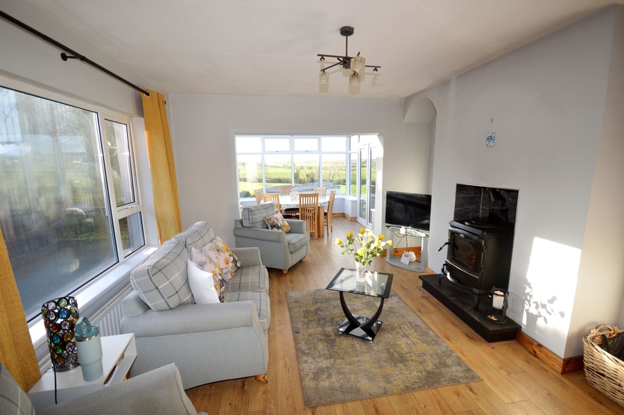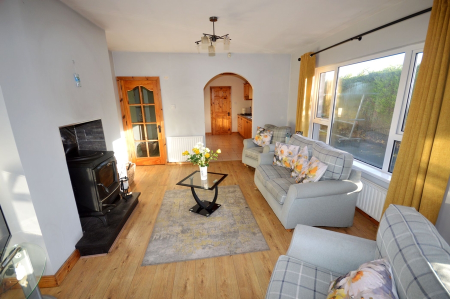 | Living Room / Dining Room | 4.20m x 4.00m | Cast iron glass fronted stove with back boiler. Timber floor. Large south facing window. Open arch into sunroom. |