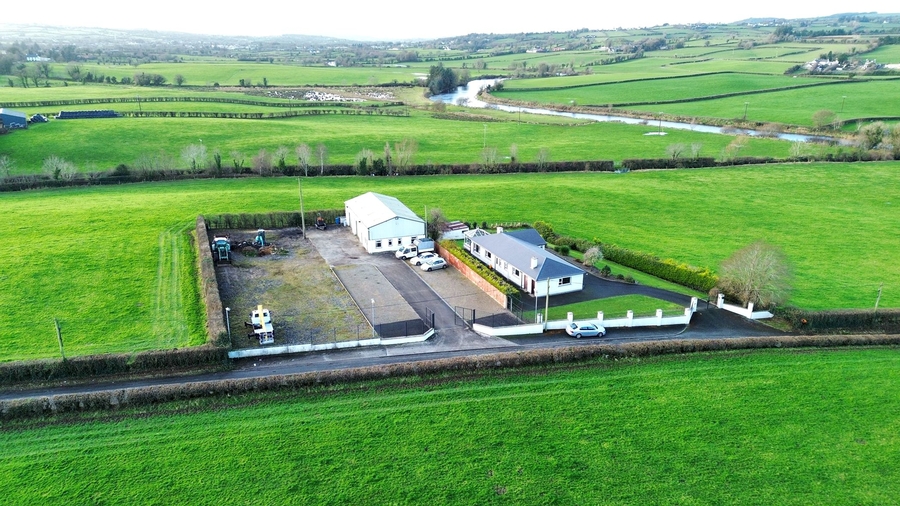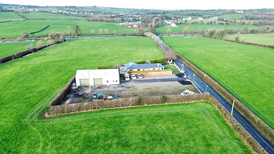 We are proud to present this combination of a modern four bedroom bungalow plus a high specification garage and hardcore yard with full planning permission for both retail and servicing. The bungalow occupies an elevated site and has surrounding views of The River Finn and the surrounding countryside. Built in the 1970's internal accommodation comprises sitting room, a very appealing open plan sunroom/living/kitchen, four bedrooms, bathroom and second W.C. An integral garage offers potential to extend the living space at little cost if desired. Landscaped grounds encircle the bungalow. The commercial premises situated behind the bungalow comprising a 0.5 acre plot hardcore surfaced and enclosed with security fencing and hedging. A modern steel framed building laid out as a workshop area with offices, WC etc measures 1,500 square feet. The plot has full planning permission for vehicle sales and servicing. Seldom does such a high quality property combination come to market. All enquires welcome. Viewing by appointment only.