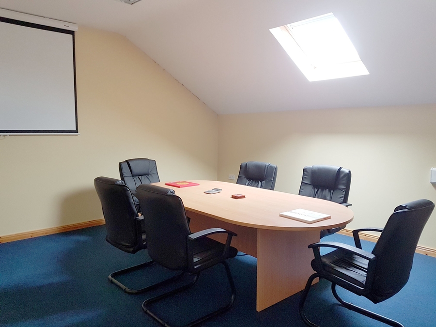 A substantial two-storey modern building extending to approximately 585 sq. metres, set on a secure, gated site with a private tarmacadam car park for 12 vehicles, conveniently located within walking distance of Ballybofey Main Street.