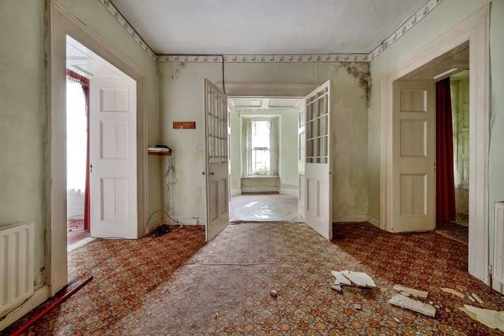 | Reception Room Left | 5m x 5m | Slate fireplace. Two south-facing shuttered windows. |