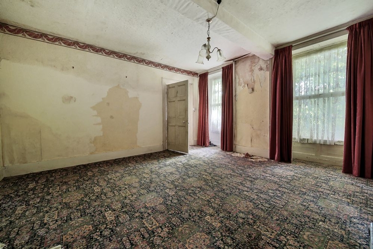 | Bedroom One (Front Right) | 5m x 5m | Two south-facing windows with shutters. Closed fireplace. |