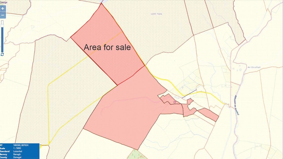 Offered for sale by private treaty is this large hill farm which is located approximately three miles North of Letterbarrow Village at the foot of the Bluestack Mountain Range. All in one compact the farm is fully fenced and has the benefit of a good quality gravel roadway running through it which creates good access. Approximately two thirds of the farm is classified as a S.A.C. (Special Area of Conservation) with the entire farm contained within a (P.N.H.A.) Proposed National Heritage Area. Land type is substantially blanket bog. In times past turf was cut and harvested on part of this hill. Maps and further details on enquiry. Seldom does a large compact farm such as this come to the market so early enquiry recommended. Closing date for receipt of initial offers is 5.30pm on Wednesday 11th March 2026.