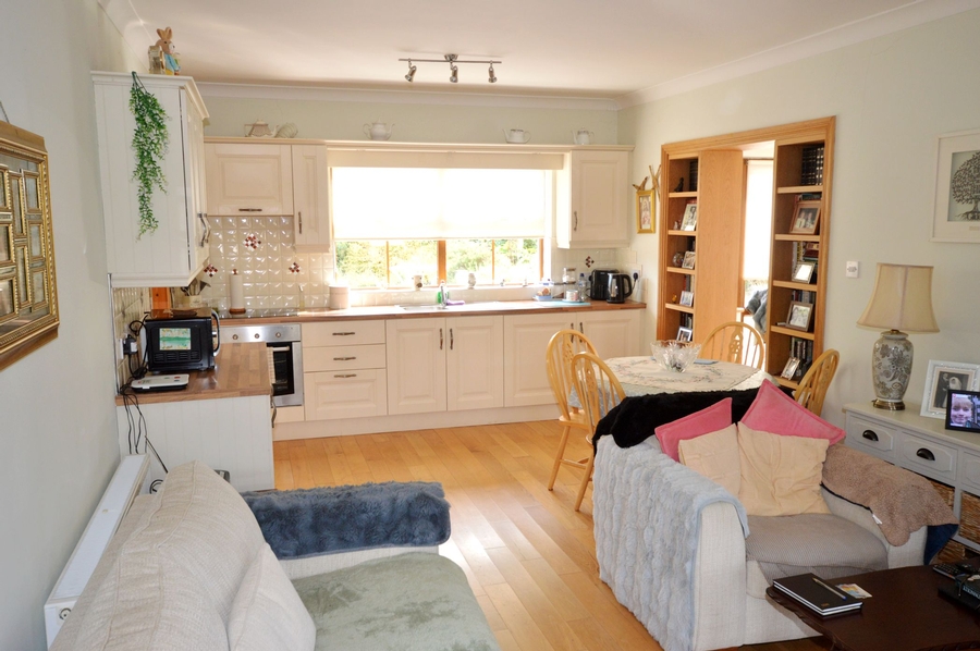 Kitchen / Sitting Room   7.00m x 3.50m   High & low level kitchen units. Dual aspect windows. Oak floor. Open fireplace. Electric oven. Electric hob. Stainless steel sink.