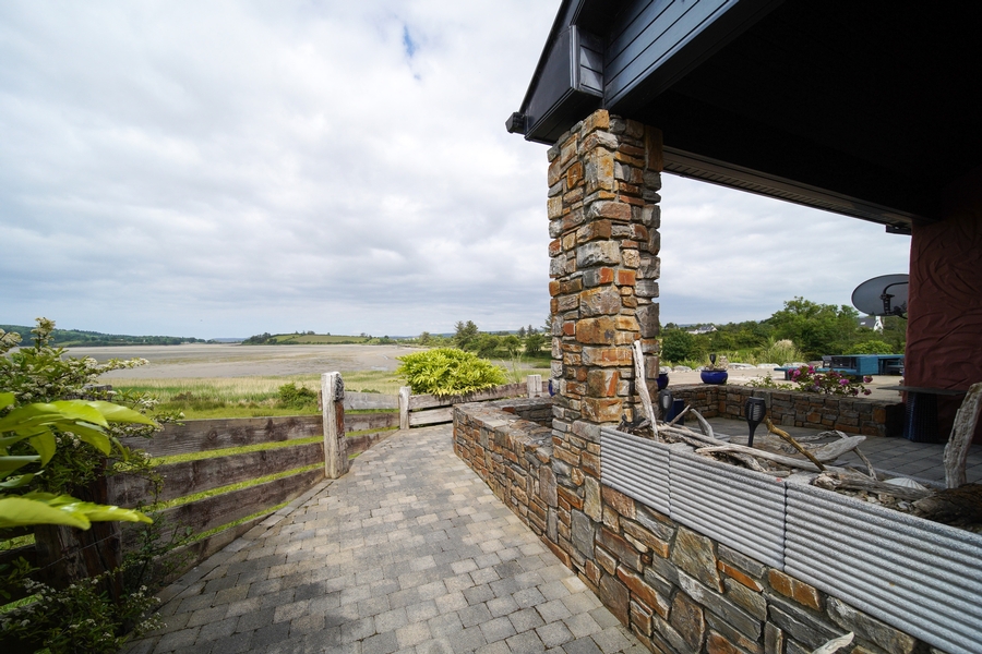 The grounds are equally impressive, with a detached Garage that includes a Shower Room, a covered car port, a brick-paved driveway encircling the house, a sheltered outdoor barbeque and seating area, and a private paved slipway that leads directly to the water’s edge.