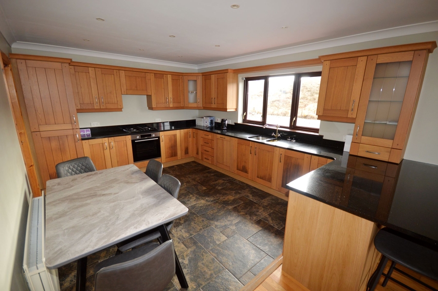 Henry Kee & Son are delighted to bring to the market this spacious six bedroom detached house. Located in the townland of Meentinadea on the outskirts of The Heritage Town of Ardara this property was originally constructed in 1998 on a large elevated plot measuring just under one acre. Approached by a stone chipped driveway and perched on an elevated site with commanding views overlooking Loughros More Bay & Ardara Town this property has been finished to a very high standard and spans an impressive 2,264 sq ft, with ground floor comprising entrance hallway, sitting room, kitchen/dining/living room, three bedrooms (one ensuite), bathroom and utility with a further three bedrooms (two ensuite) and bathroom on the first floor. If you are looking for a modern, convenient, comfortable home in walk-in condition then this is the home for you. This property will most certainly appeal to first time buyers, families or investor alike. Viewing is highly recommended. Viewing by appointment only.