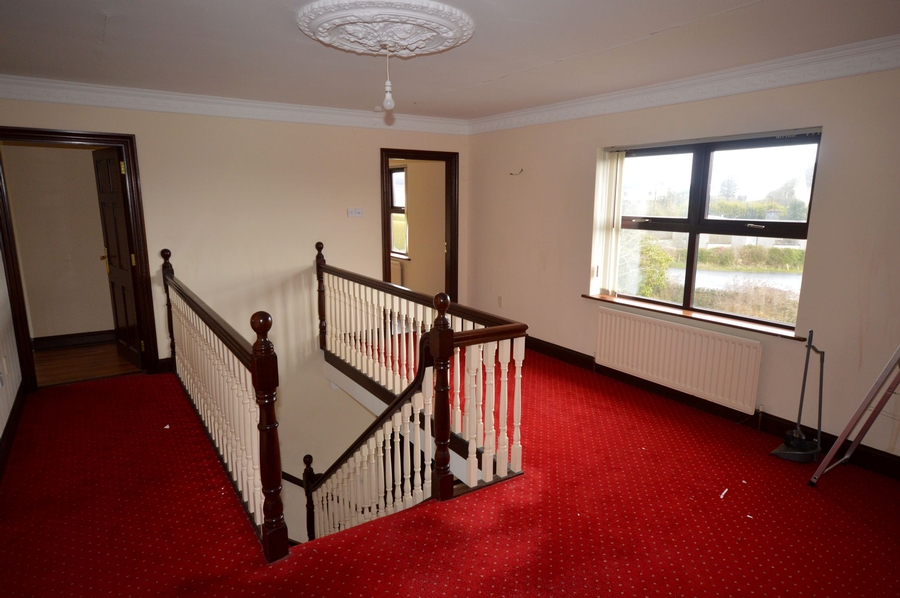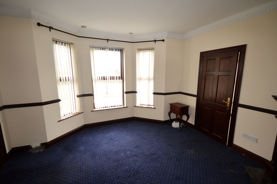 | Main Hallway | 5.8m x 4.8m | Return mahogany stairs leading to first floor. Floor carpeted. Three ornate wall lights and three ceiling lights to match. Dado rail. Ornate cornicing. |