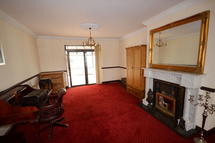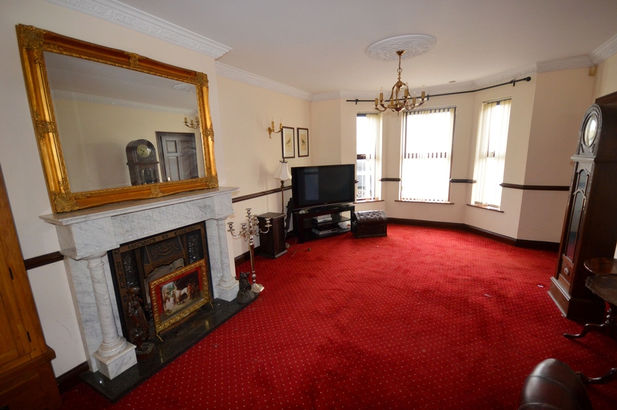 | Sitting Room | 7.6m x 4.3m | Open fire with marble fireplace. Bay window to front. Patio door at rear into conservatory. Dado rail. Ornate cornicing. Two centre ceiling lights and two wall lights. |