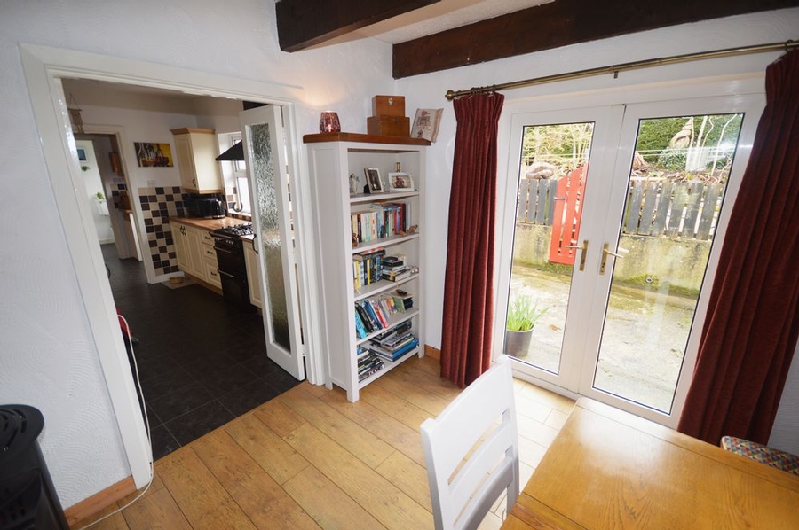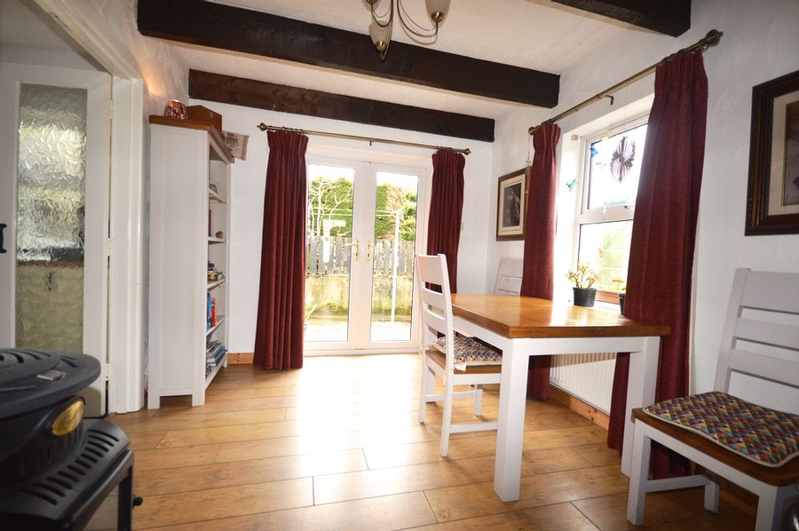 | Dining Area | 3.0m x 2.8m | Patio doors to rear garden. Gable window. Double glass doors to kitchen. Laminate timber floor. Exposed timber beam ceiling. Three-stem ceiling light. |