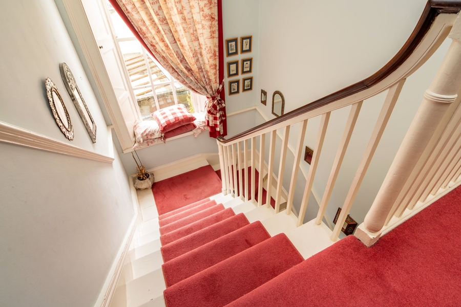| Main Hall | 7.0m x 2.0m | Pitch pine timber floor - classic 5” wide board, tongue and groove design, Turned staircase, naturally lit by 16 over 6 pane sliding sash window, Dado rail, Coving to the ceiling, Symmetrically positioned doors left and right opening into Main Sitting Room and Living Room respectively. |