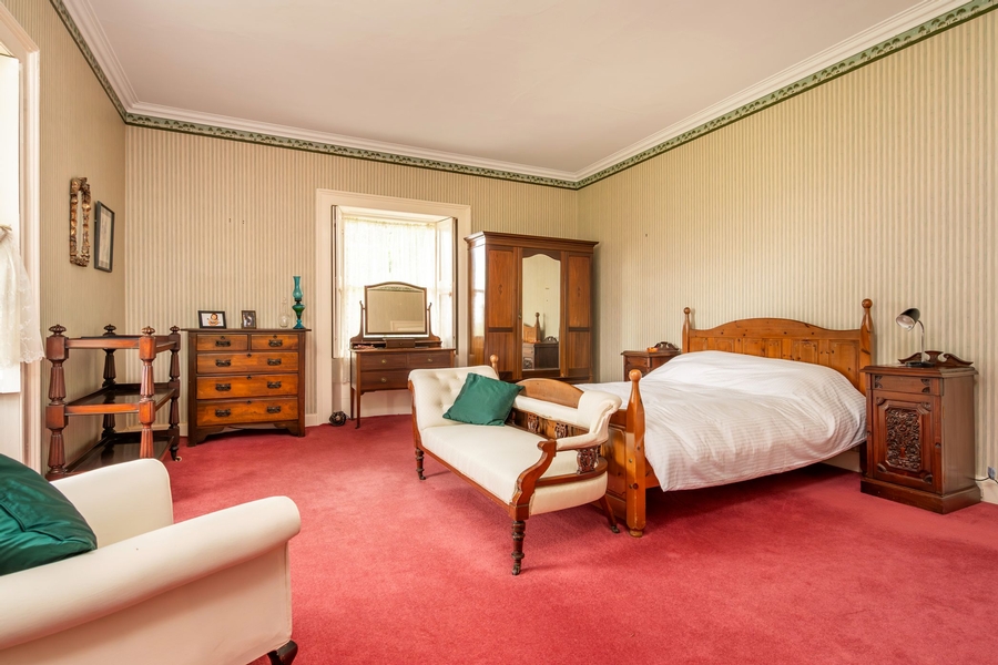 | Master Bedroom | 6.0m x 4.8m | Dual aspect with east and south facing sliding sash windows, Carpeted, Slate fireplace with cast iron insert, Coving to Ceiling. Dressing room 2.0m x 2.0m East facing sliding sash window, Carpeted. |