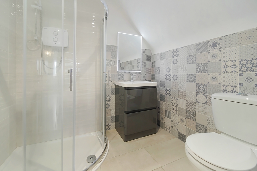 | Shower Room | 2.9m x 2.6m | Tiled flooring and partially tiled walls. WC, WHB and shower. |