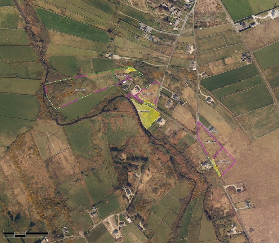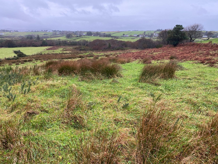 A 10-acre farm is offered for lease in the townland of Moyra Glebe, approximately 2.5 km from Falcarragh town. The farm comprises three separate portions, featuring a mixture of field land and some rough grazing areas.